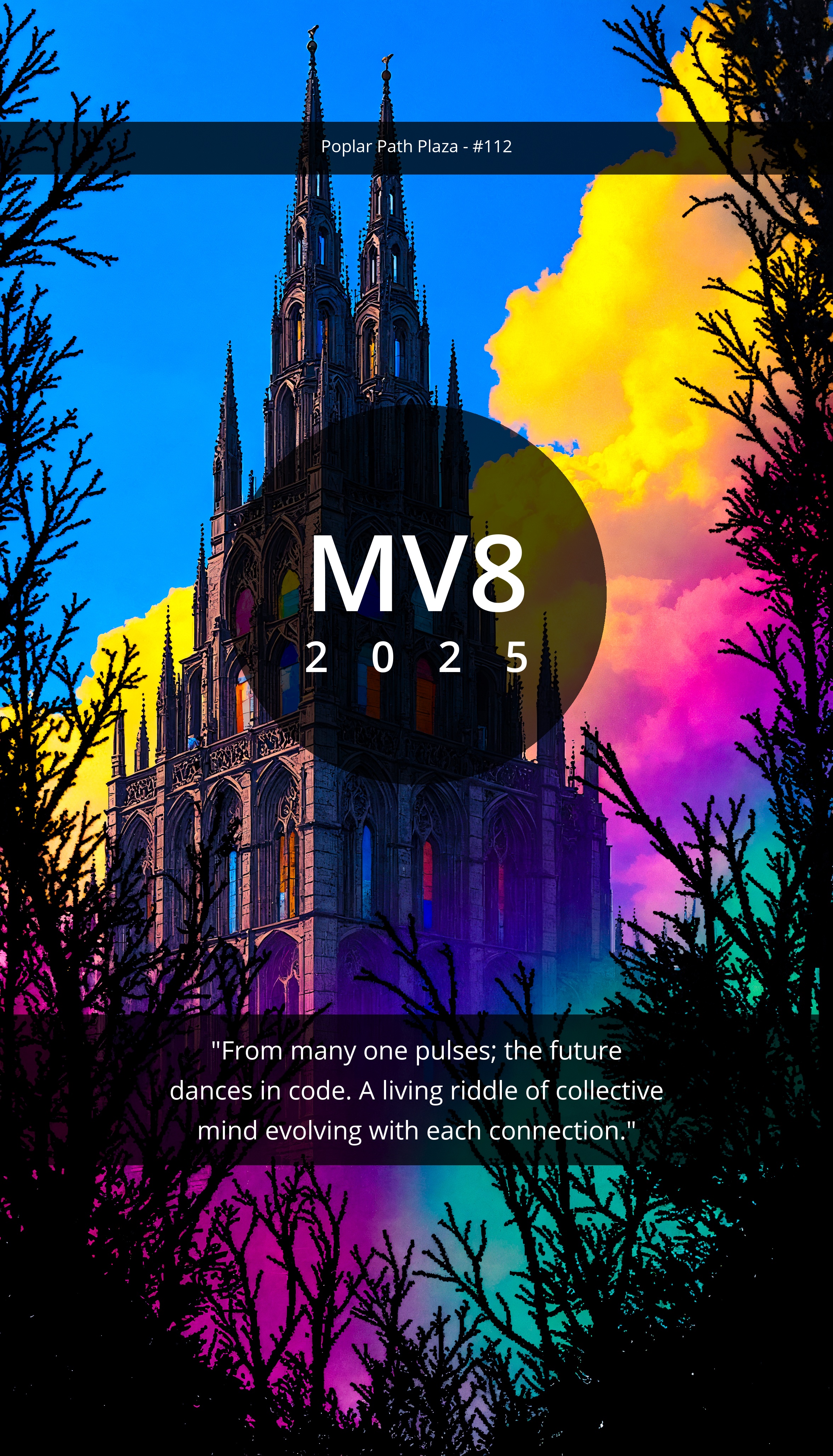 "From many one pulses; the future dances in code. A living riddle of collective mind evolving with each connection."