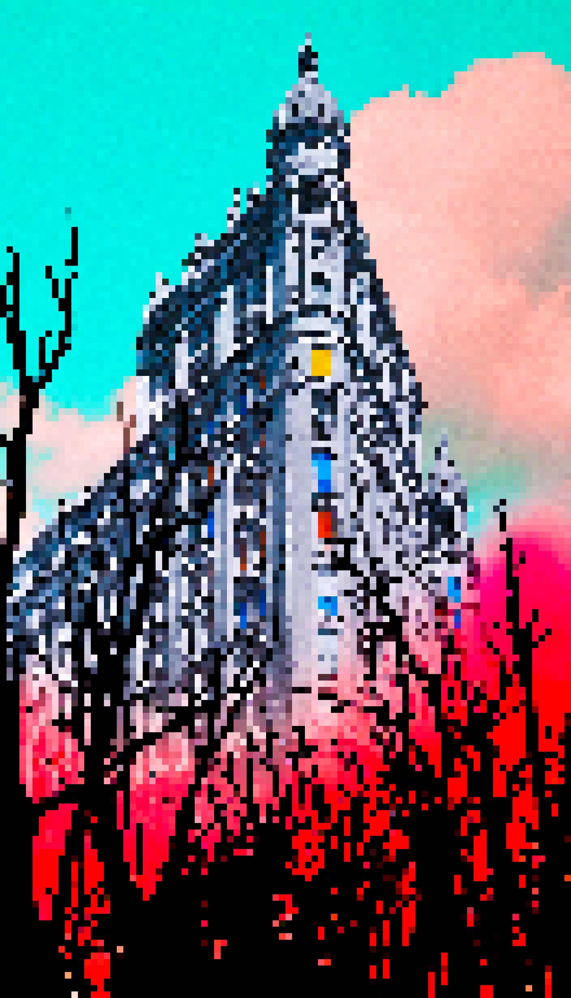 In the upper right corner of the image there's a small digital overlay that seems to be an error or glitch displaying a distorted pattern of what appears to be a windowpane or tiles. This overlay is superimposed on the artwork interrupting the visual continuity.