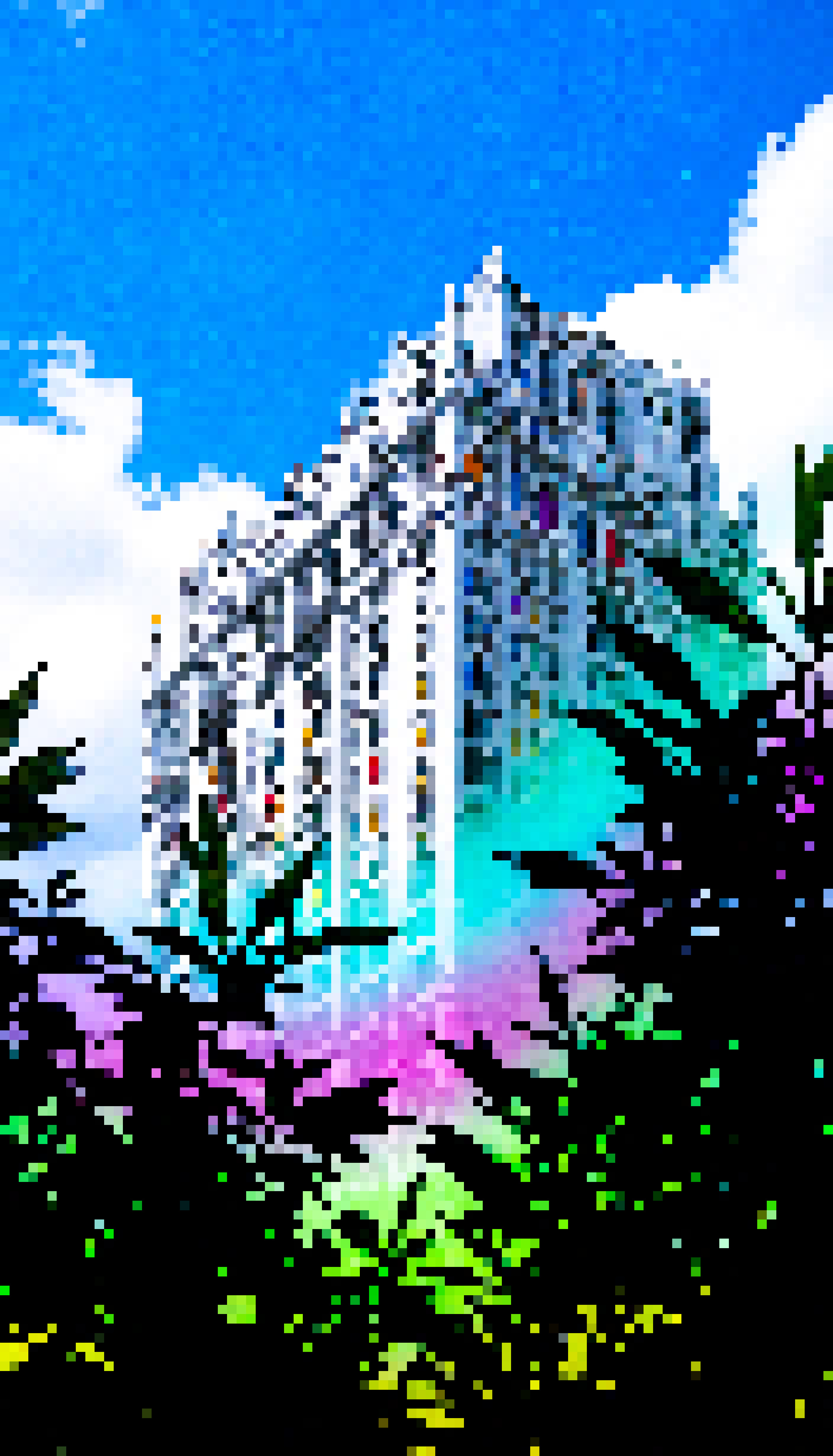 There are no visible texts or human figures in the image emphasizing the architectural structure and natural elements on either side. The style of the image is reminiscent of an edited digital creation rather than a traditional photograph.