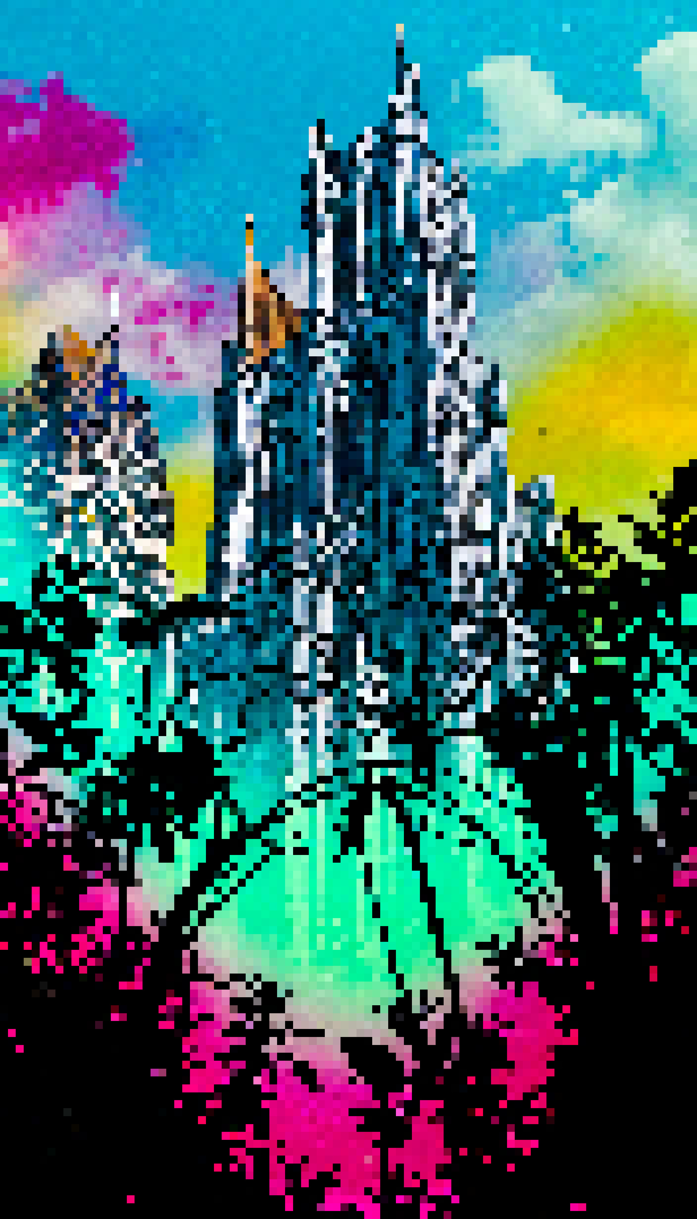The style of the image suggests that it may have been digitally altered or composed to combine elements from different scenes into a single piece of art. The dividing line helps to distinguish between the two images and allows for a clear separation of the cityscape on each side.