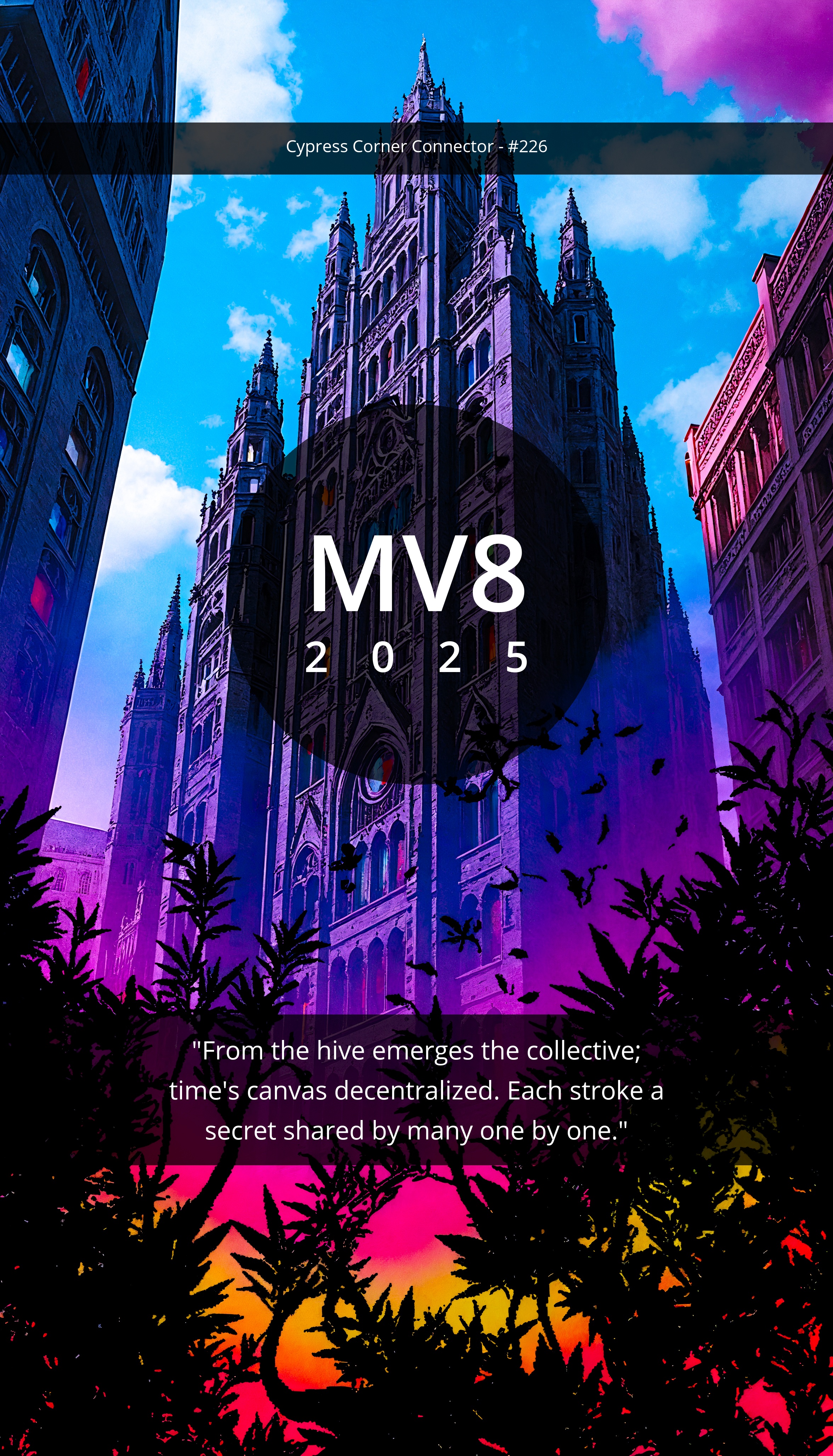 "From the hive emerges the collective; time's canvas decentralized. Each stroke a secret shared by many one by one."