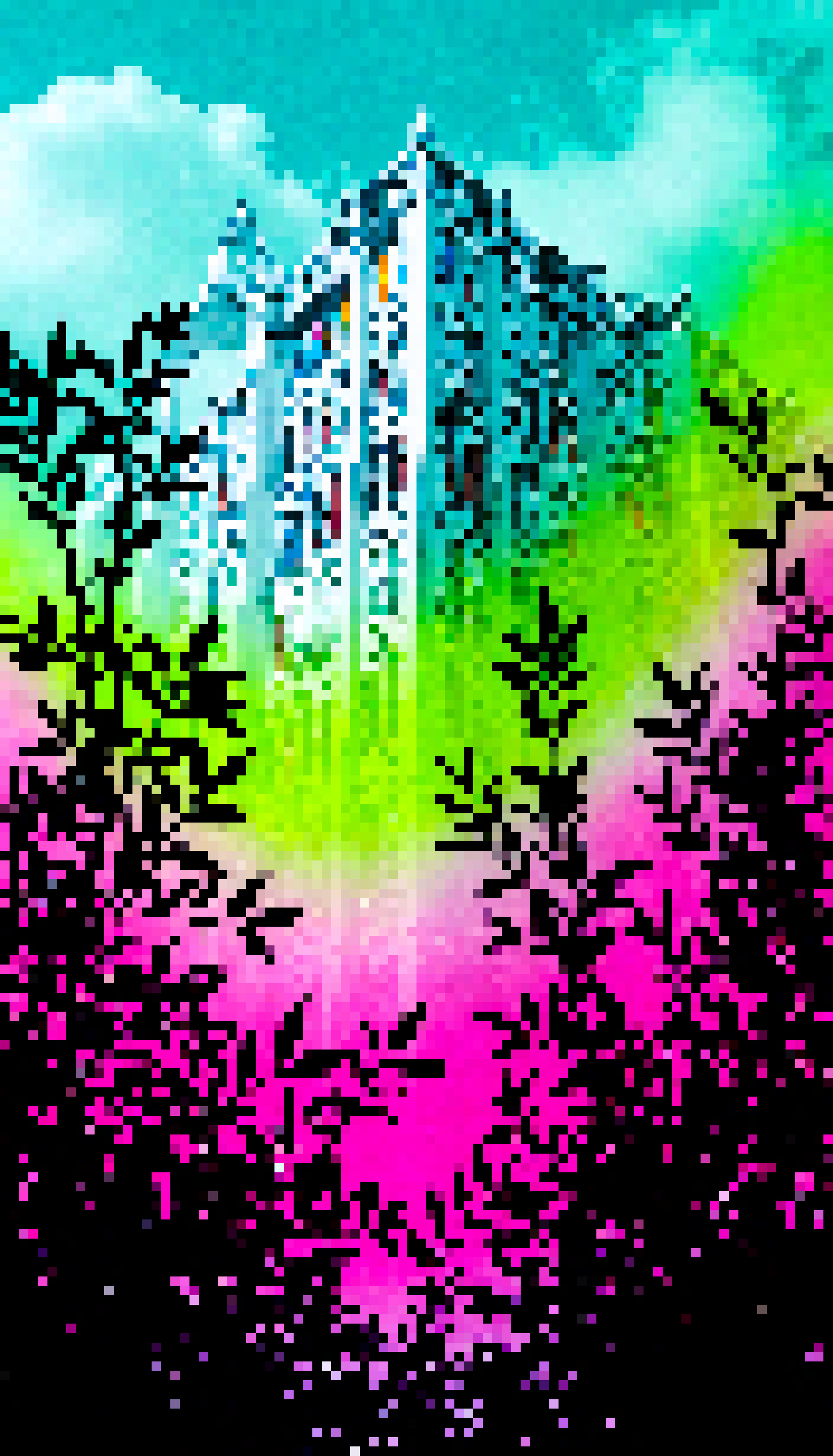 On the right half of the image there is a vibrant colorful graphic overlay. This graphic appears to be a digital painting or illustration with an emphasis on bright colors such as pink green blue and yellow. The style of the graphic is reminiscent of pop art characterized by bold flat colors and outlines that give it a distinct modern feel.