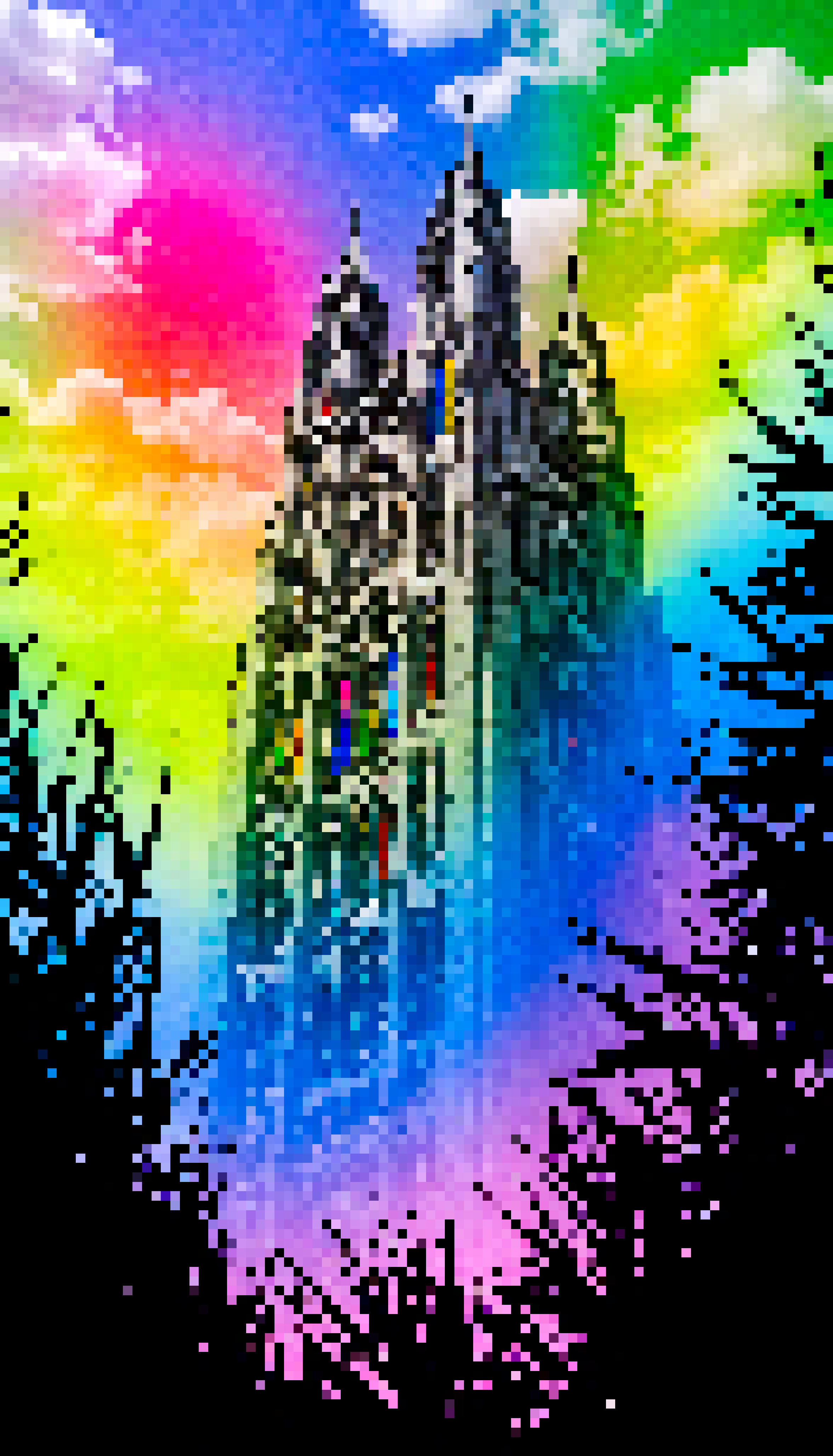 The image presents a captivating view of the St. John's Cathedral located in Nottingham England. This iconic structure known for its architectural grandeur stands majestically against a backdrop of a rainbow sky. The perspective of the image is from ground level offering an upward view that emphasizes the towering height of the cathedral.