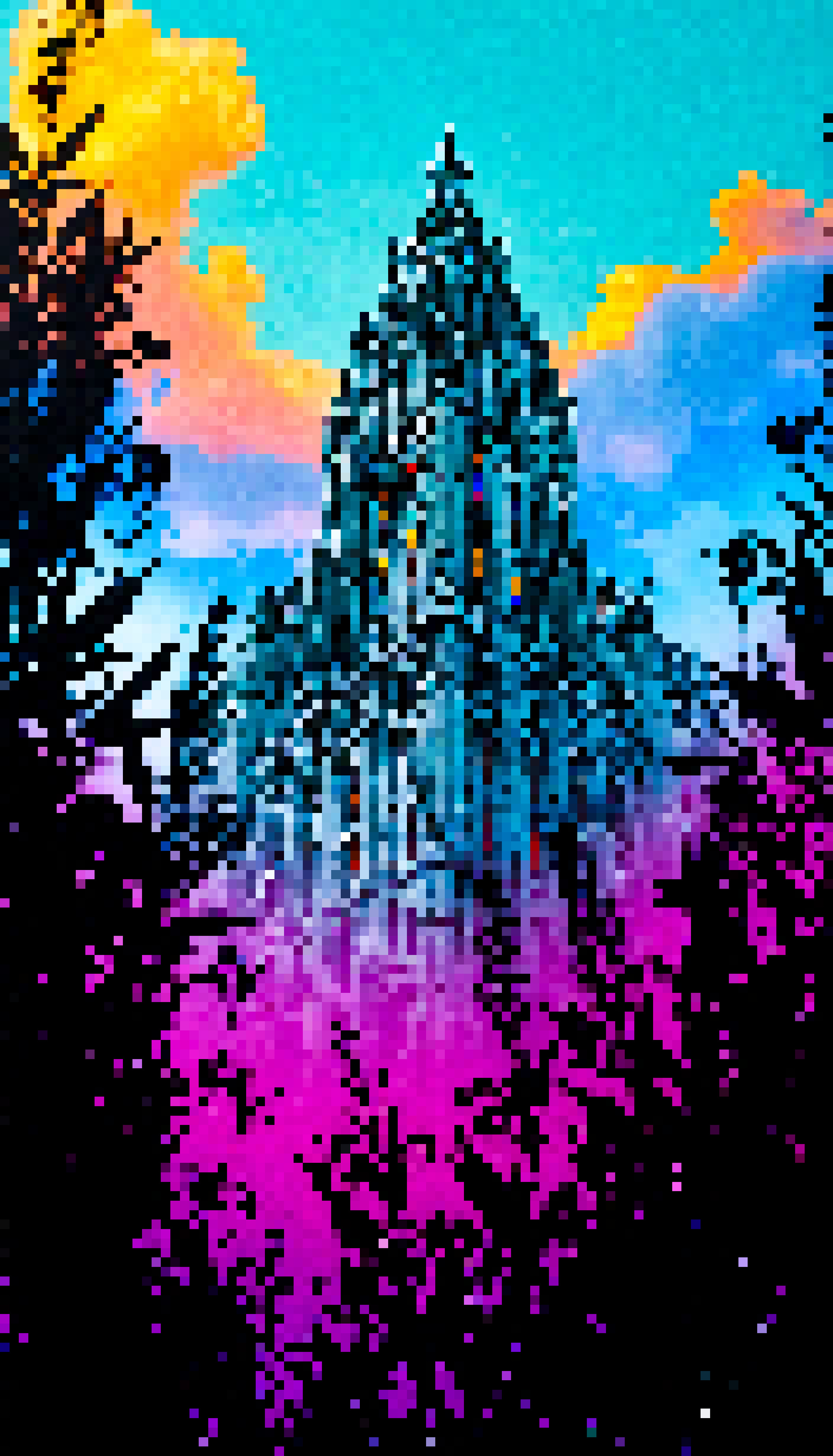 The image is a digital artwork featuring the Cathedral of Santiago de Compostela also known as the Santiago Cathedral or St. James's Cathedral prominently displayed in the background with its intricate Gothic architecture and spires visible against a vibrant sky filled with fluffy clouds. In the foreground the Marisol's signature style is evident characterized by vivid colors and detailed shading that gives depth to the landscape and the plants growing in the lower right corner of the image. The cathedral is nestled amidst lush green foliage with various plant species adding to the natural beauty of the scene. The color palette of the artwork ranges from cool blues and purples in the sky to warm yellows and greens on the vegetation creating a stark contrast between the man-made marvel and the surrounding nature. The image has been digitally altered or is in the process of being completed as evidenced by the visible seams where different parts of the artwork meet.