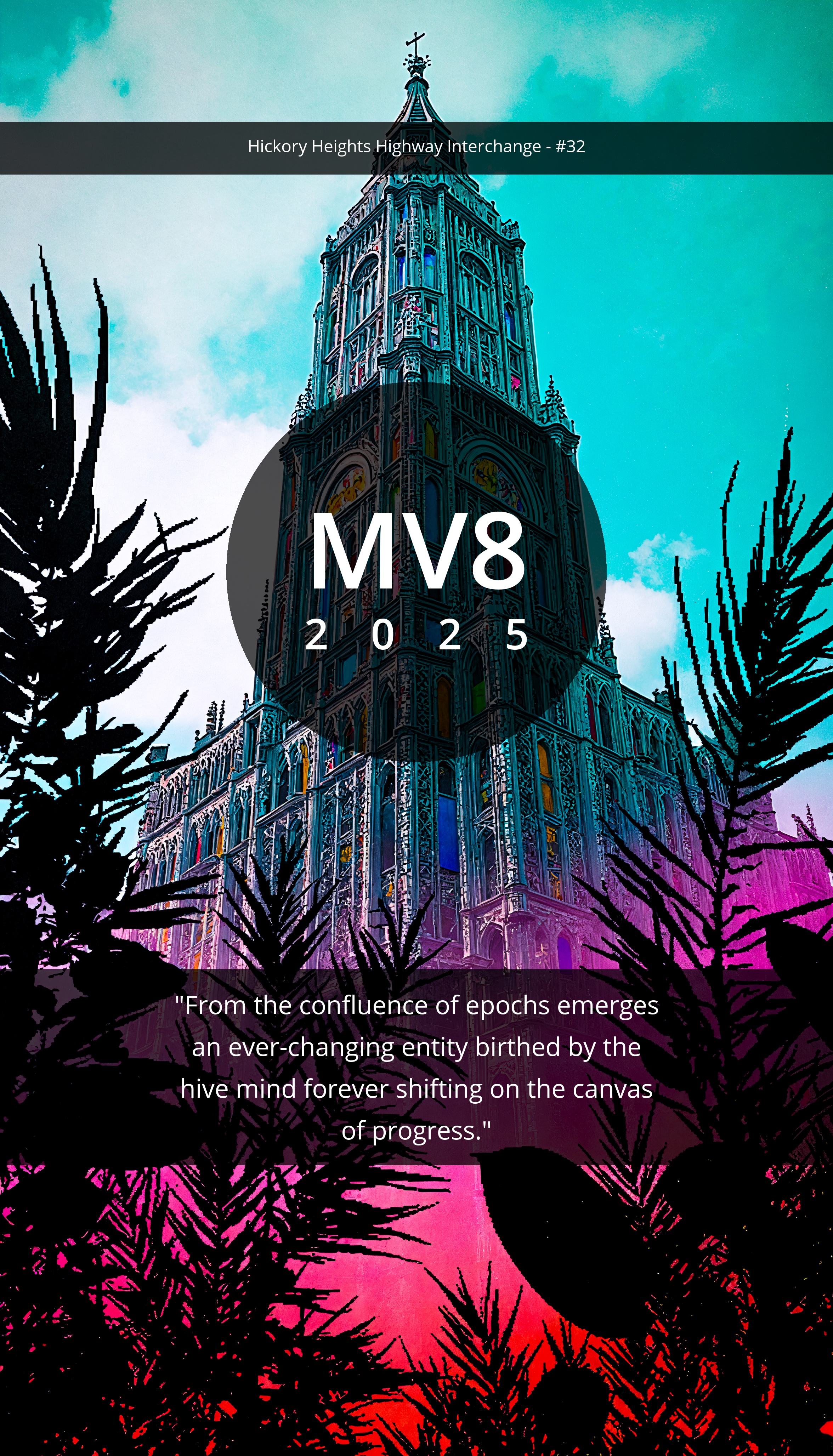 "From the confluence of epochs emerges an ever-changing entity birthed by the hive mind forever shifting on the canvas of progress."
