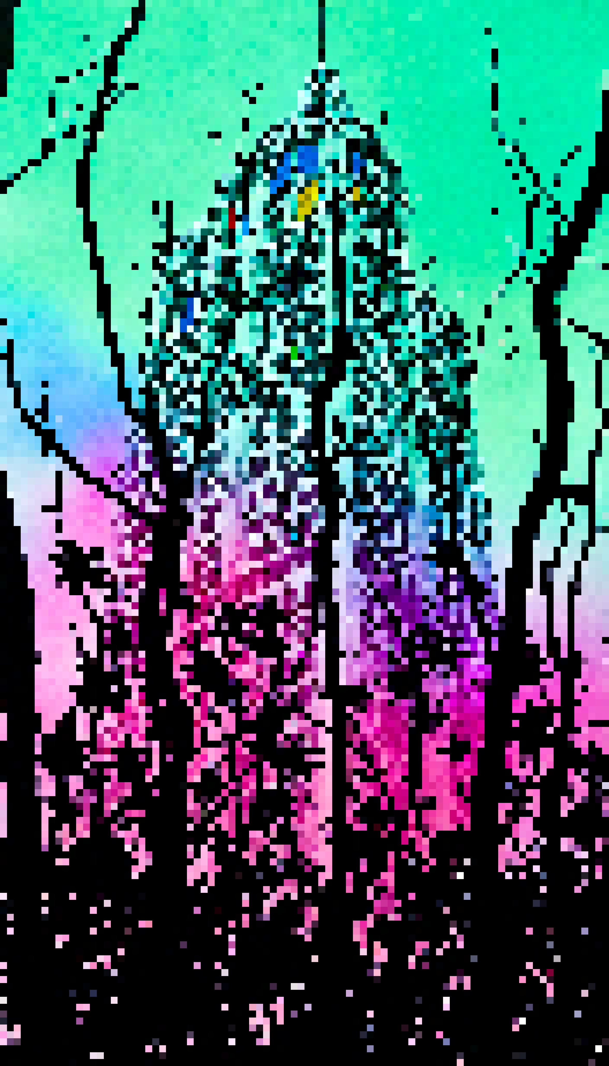 The image presents a vibrant scene dominated by a towering building. The building painted in hues of purple and pink stands tall against the backdrop of a lush green forest. It is adorned with multiple windows on its facade hinting at the activity within.