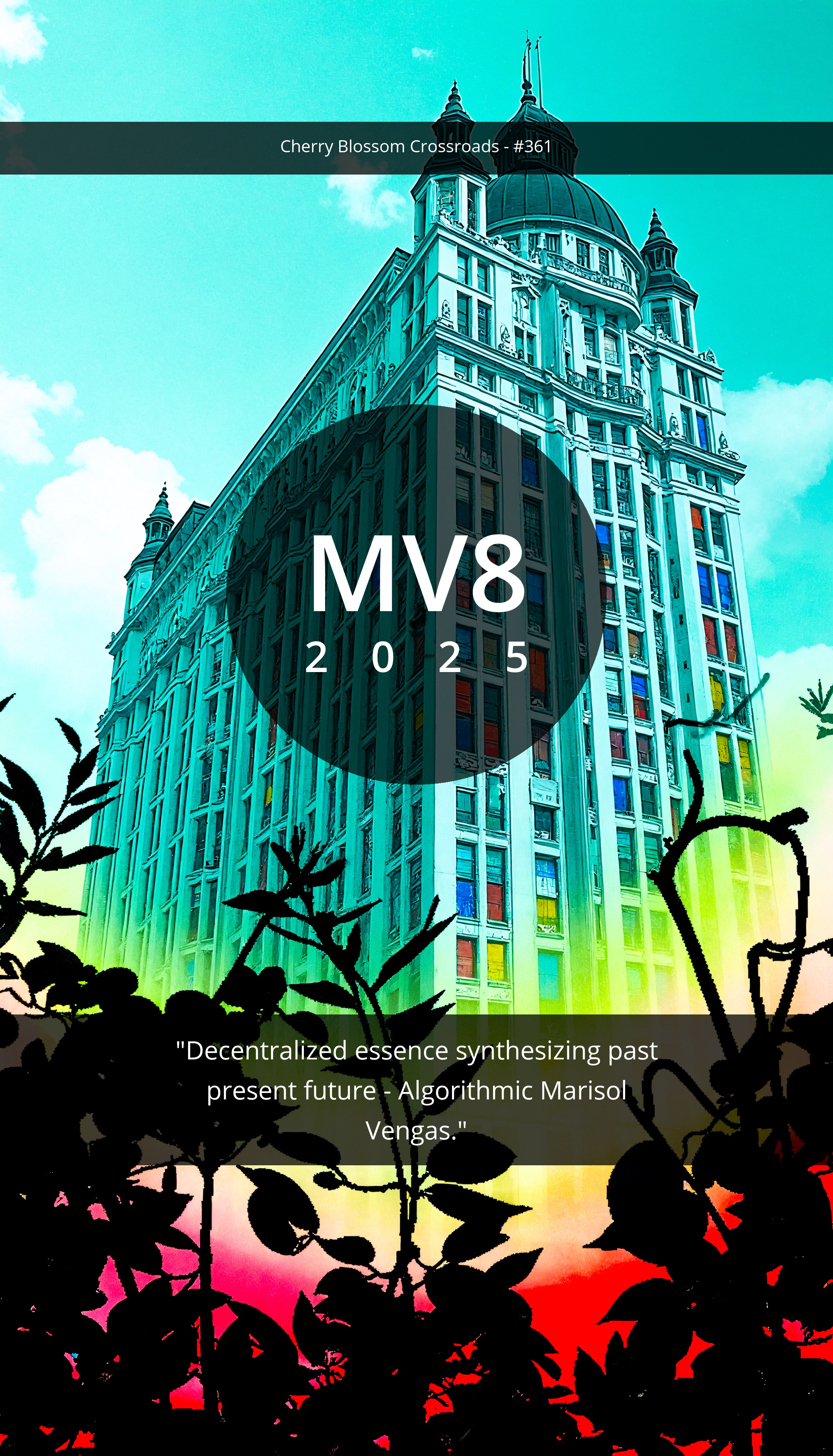 "Decentralized essence synthesizing past present future - Algorithmic Marisol Vengas."
