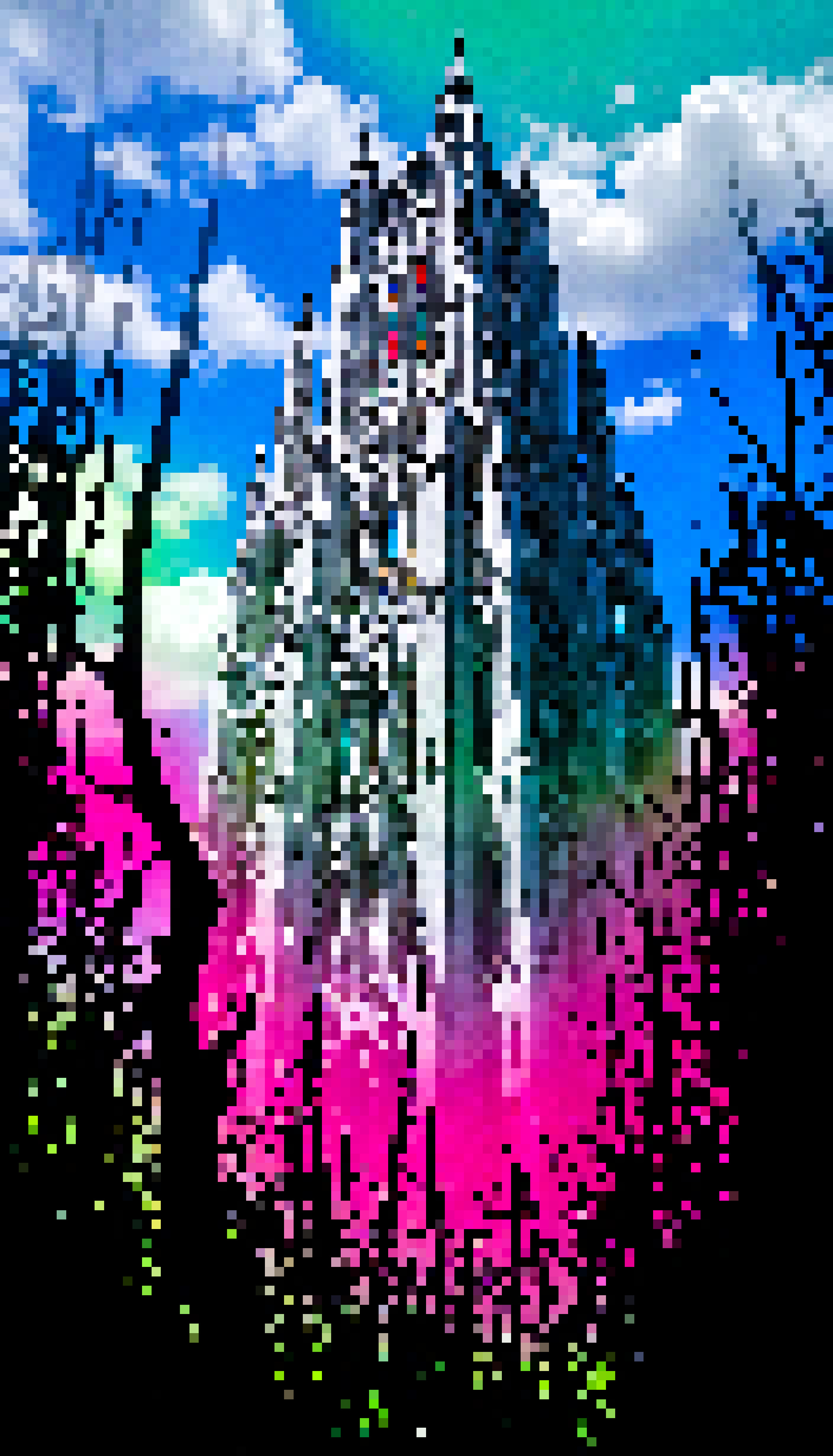 The image's style suggests that it may be digitally altered or manipulated given the presence of the rainbow which appears to be superimposed over the scene. The colors in the image are quite vivid and saturated enhancing its fantastical nature.