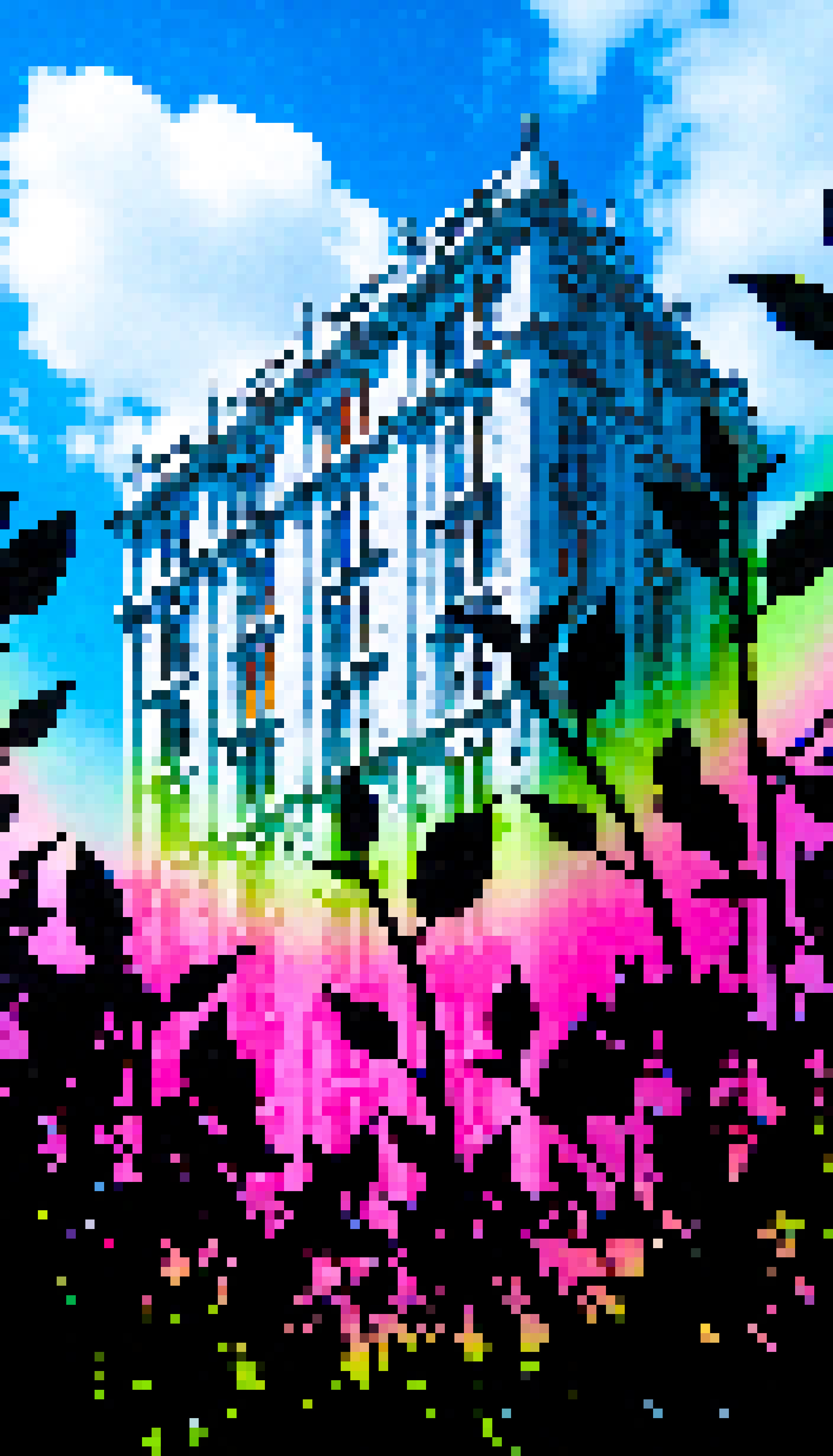 On the right side there's a digitally altered image overlaid on the photograph. This alteration features a vibrant rainbow-like spectrum that fills the entire right side of the image. Overlapping this spectrum is an illustration of a tree with green leaves. The tree has a somewhat whimsical appearance due to its stylized nature and the bright colors used for the foliage.