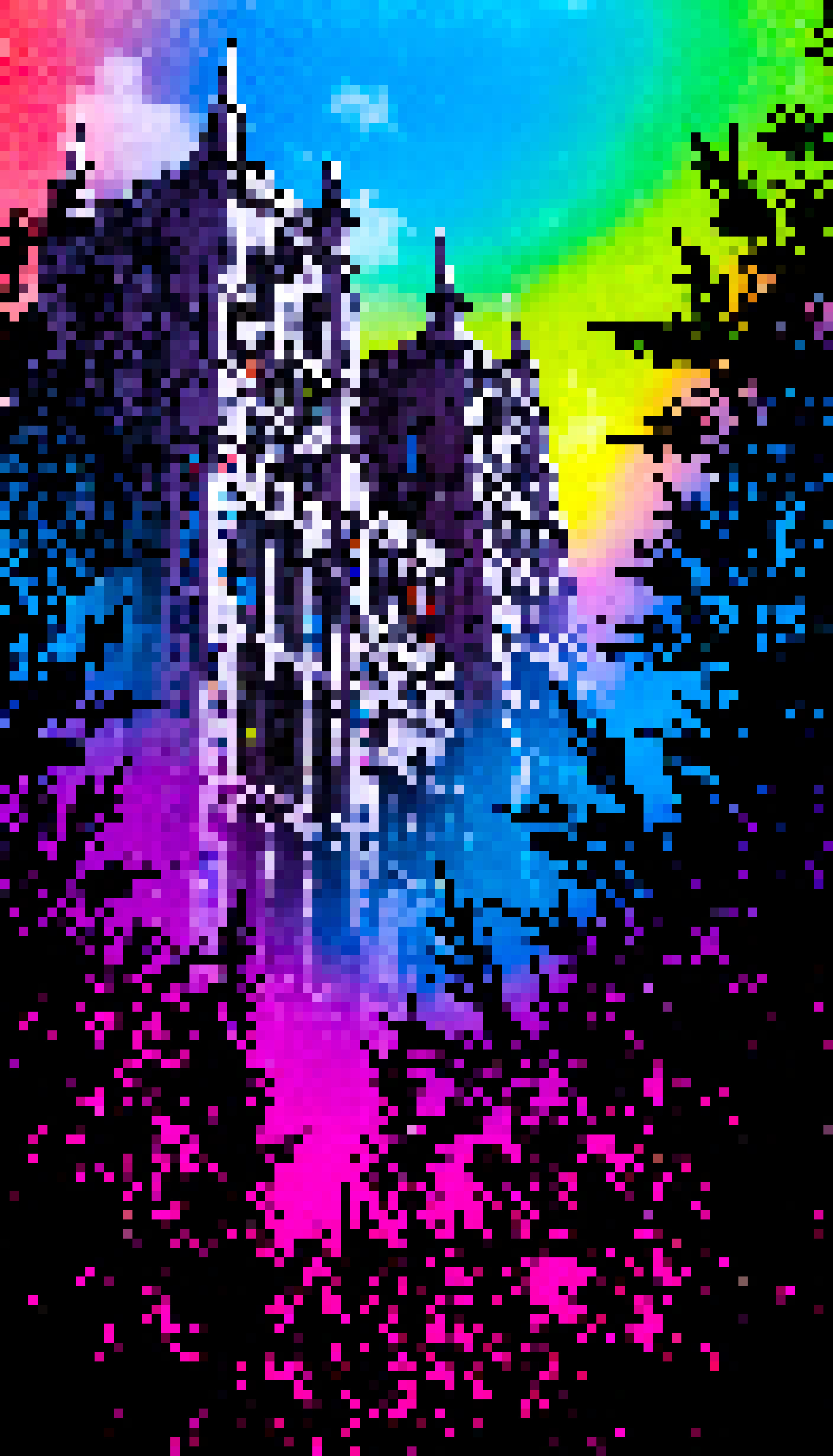 Overlaying this castle are two distinct layers - a photograph and a graphic illustration. The photograph layer features a colorful rainbow arcing across the image from left to right. This layer also contains text that reads "GIF" suggesting that this image may have been created or shared in a digital format.