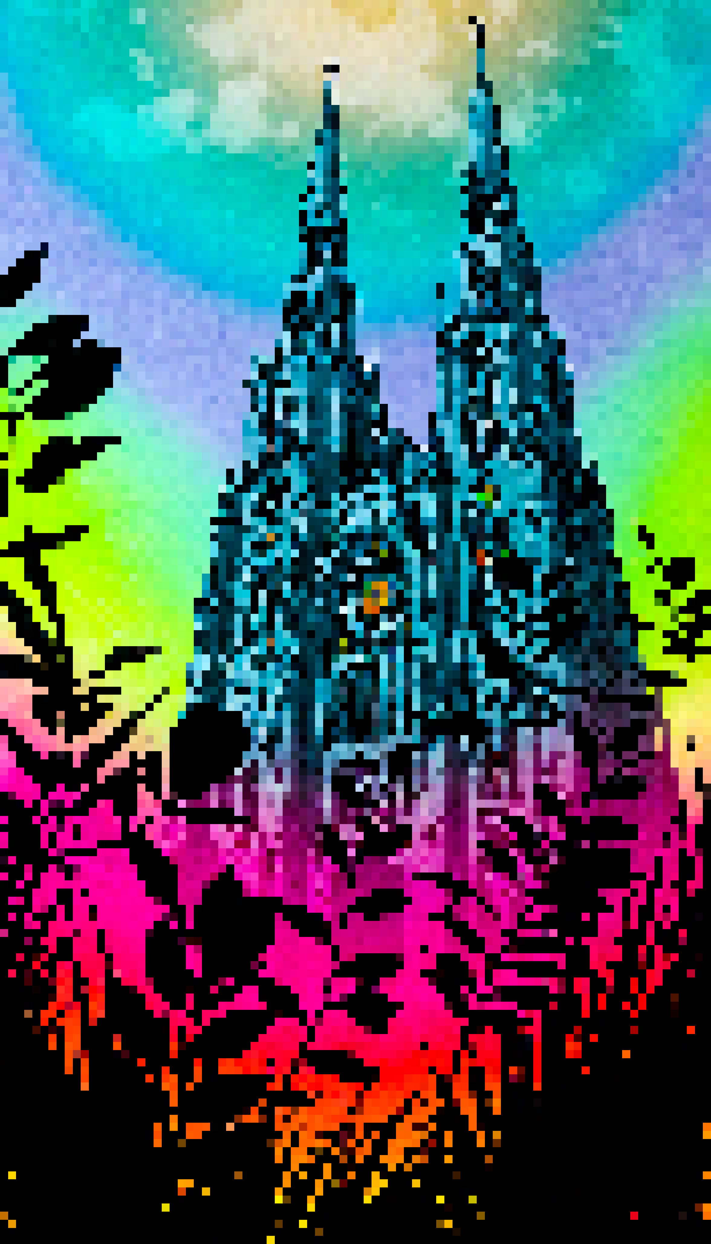 The image is rich in color with each quadrant contributing to the overall vibrancy. The use of various shades of blue green and yellow creates a visually appealing contrast between the natural elements and the architectural marvel that is St. Michael's Church.