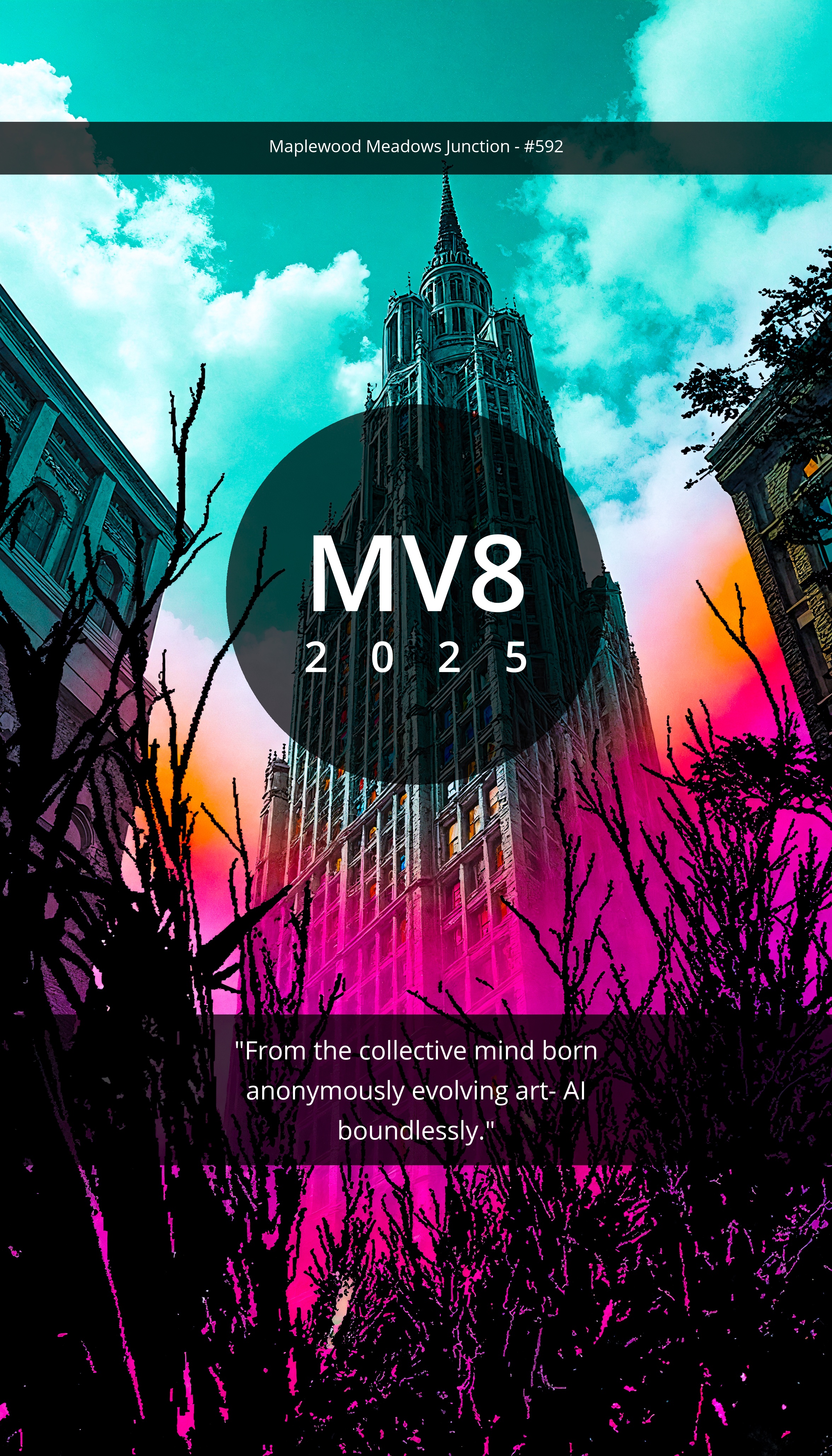 "From the collective mind born anonymously evolving art- AI boundlessly."