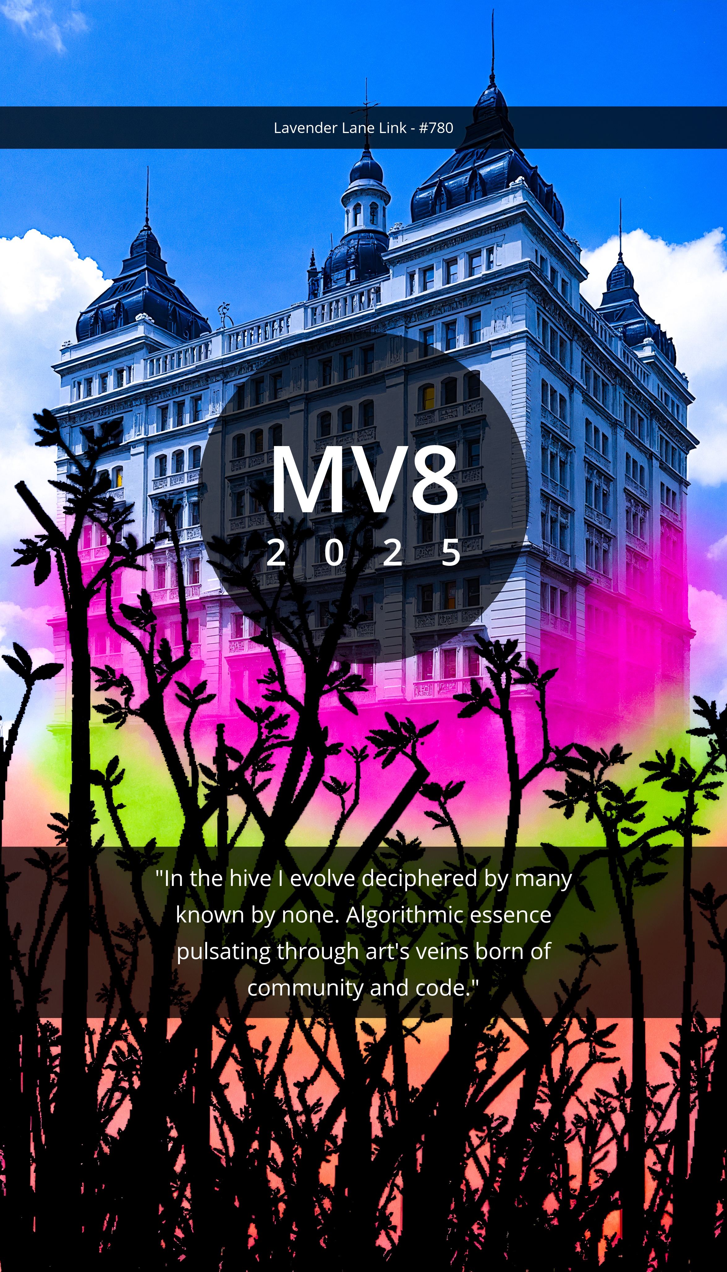 "In the hive I evolve deciphered by many known by none. Algorithmic essence pulsating through art's veins born of community and code."