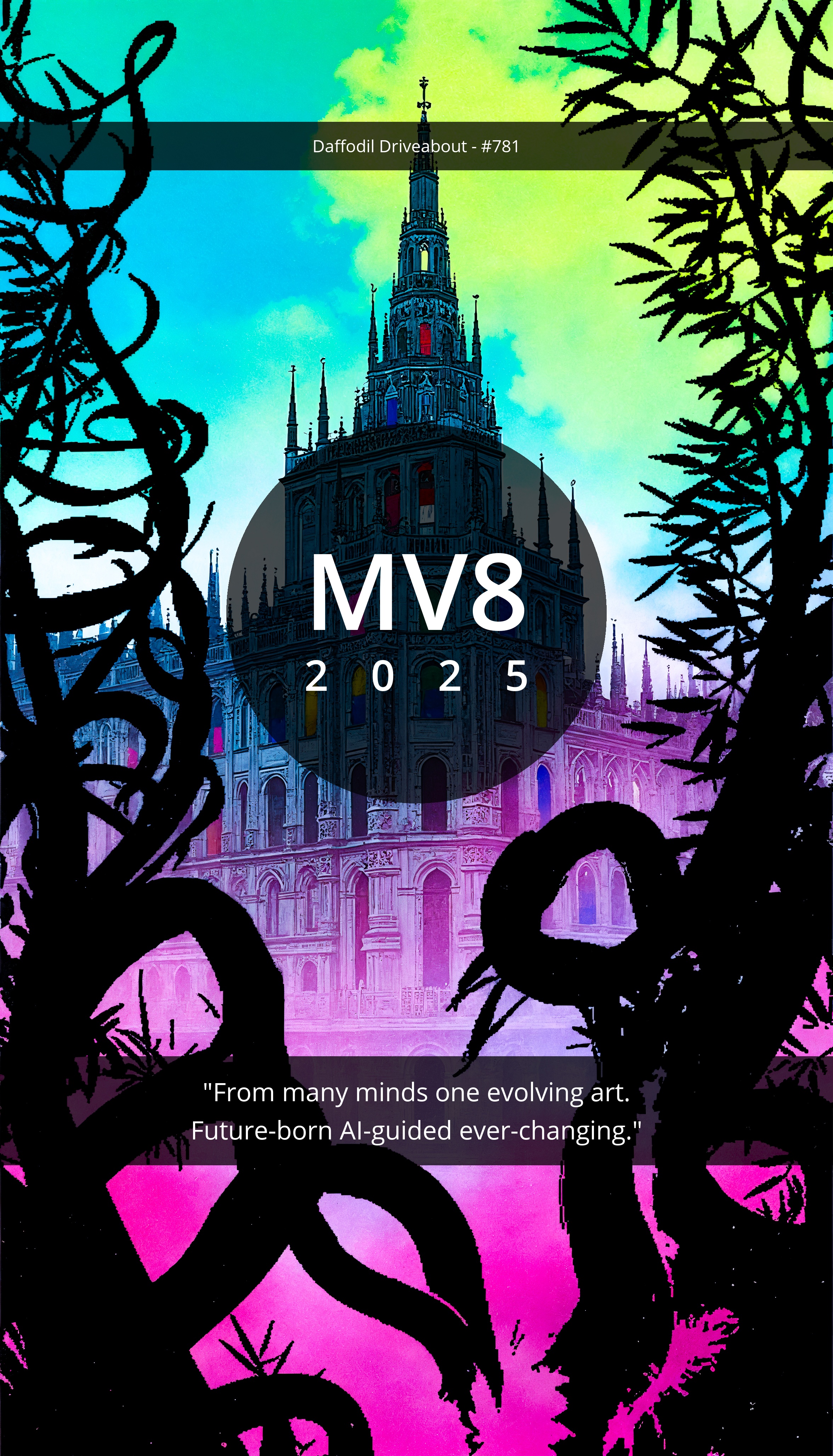 "From many minds one evolving art. Future-born AI-guided ever-changing."