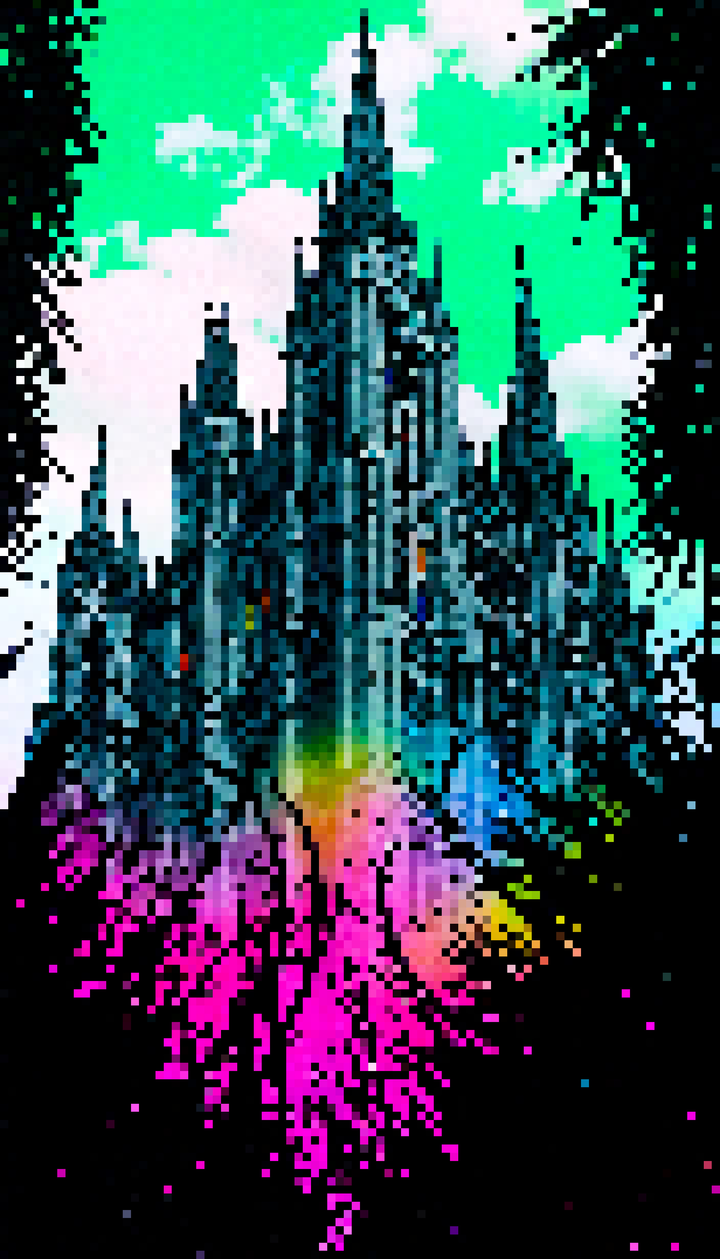 In terms of composition the image is divided into two main parts. The upper half showcases the cathedral's grandeur while the lower half captures a detail that adds an element of realism to the otherwise fantastical image - a palm tree. This juxtaposition creates a balance between the fantastical and the realistic elements in the image.