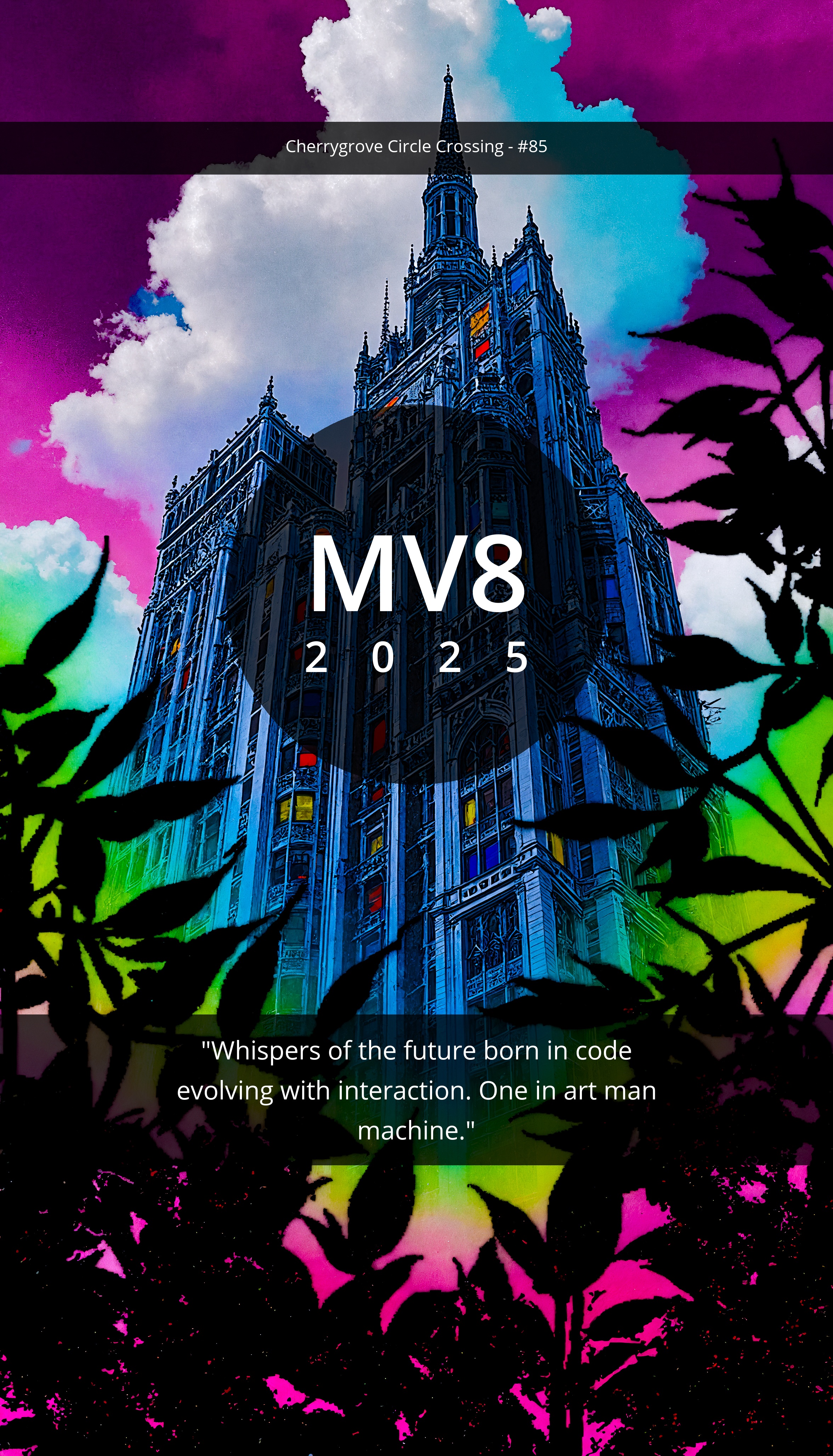 "Whispers of the future born in code evolving with interaction. One in art man machine."